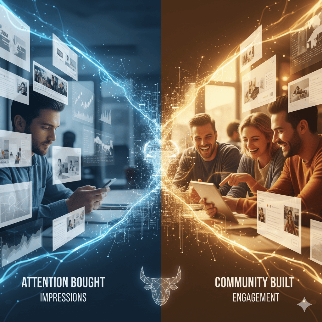 Cuando una marca basa su visibilidad exclusivamente en el presupuesto publicitario, se encuentra en una posición de fragilidad: es inquilina de las plataformas. Si el algoritmo cambia o el costo por clic (CPC) sube, la marca desaparece. La atención alquilada es efímera; deja de pagar y las luces se apagan.